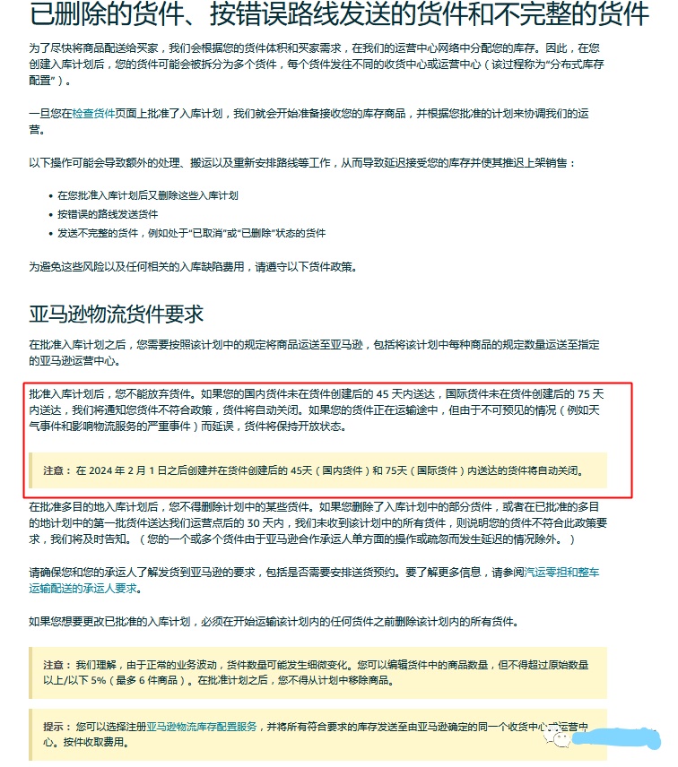 賣家需要遵循新的貨件政策,依照入庫計劃將商品運送到亞馬遜指定的運營中心。