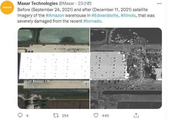 衛(wèi)星圖顯示龍卷風(fēng)襲擊亞馬遜倉(cāng)庫(kù)前后驚人對(duì)比